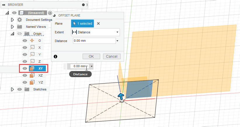 • Click on the Off set Plane tool from the CONSTRUCT drop-down of the SOLID tab in the Toolbar and select XY Plane from Origin node of BROWSER; refer to Figure-6.